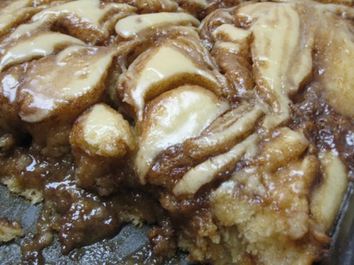 Pinterest is a pretty amazing thing if you ask me. It’s very inspiring, even though I will probably not do more than half the things I pin to my boards. But this cinnamon roll cake peaked my interest. In the photo I pinned, it looks so rich and decadent. My husband loves all things cinnamon, so I thought I’d give it a try. Find the original pin here if you’re pinterested: http://pinterest.com/pin/243475923574739444/