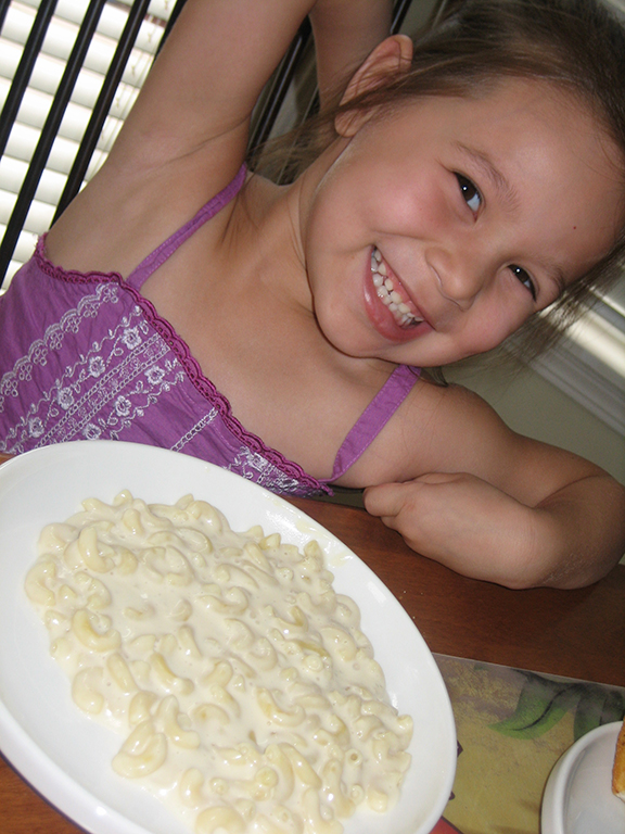 I hope the smile on her face tells you that this is a fantastic recipe, and it is super easy. Every kid deserves to have macaroni and cheese. But believe me, adults will love this, too!